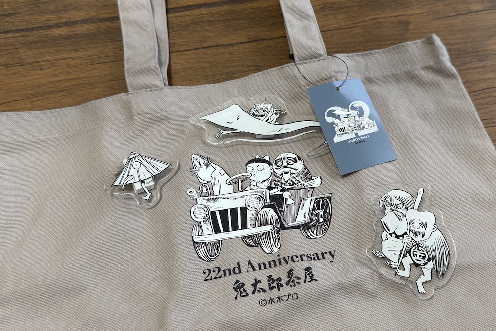 トートバッグはブラウンというか何色かな?ちょっといい感じで気に入ってはいます。が、これ鬼太郎いないとなんだか中途半端なデザインになる気が…。