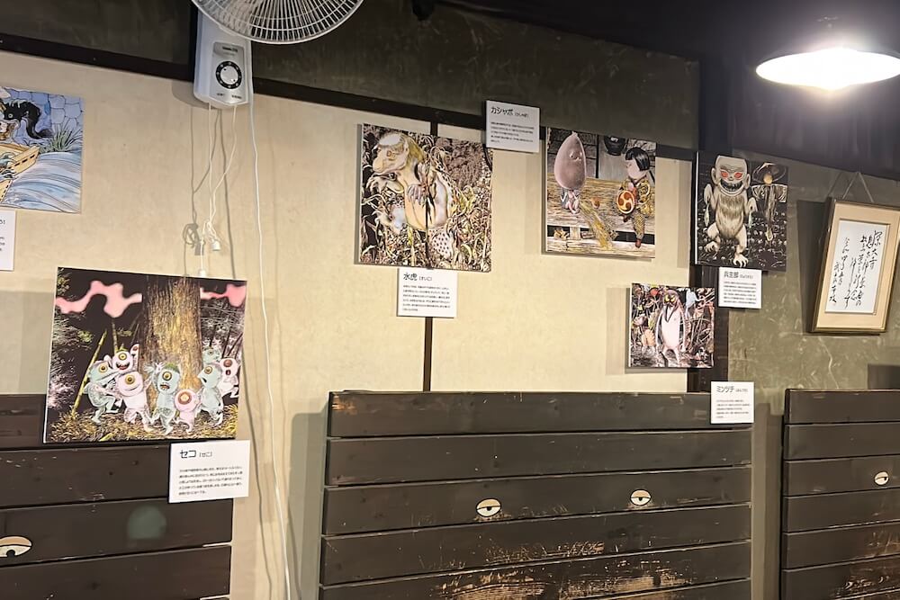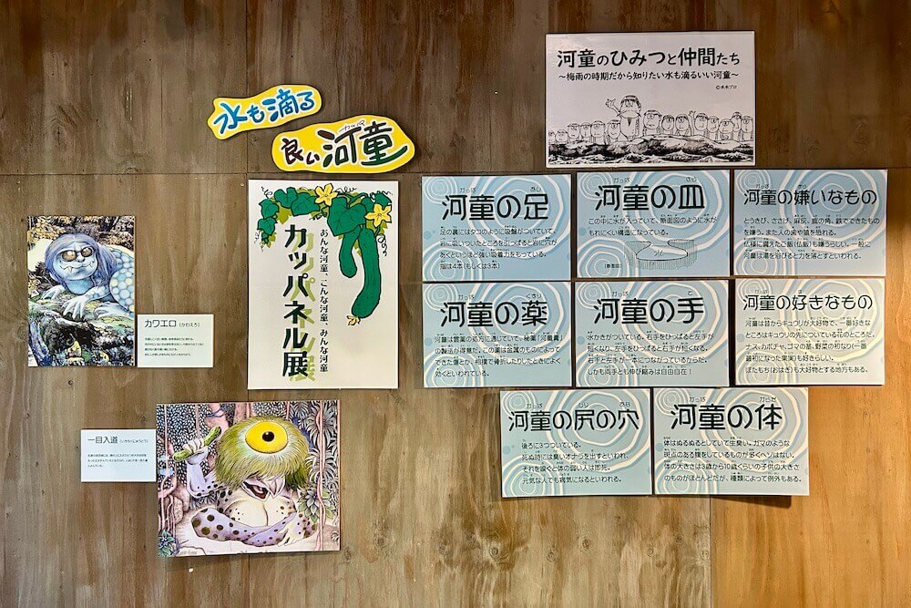 喫茶コーナーに河童と仲間たちの紹介パネルが展示されていました〜