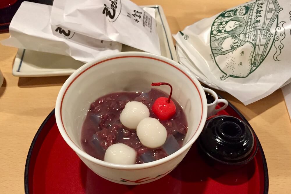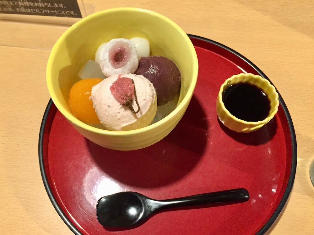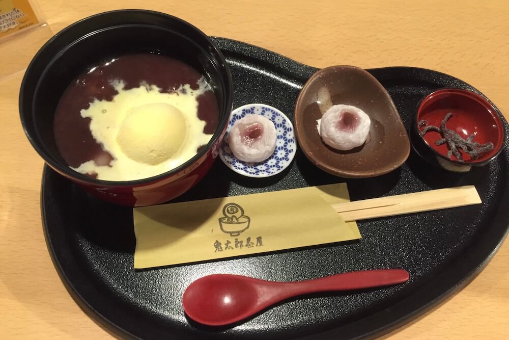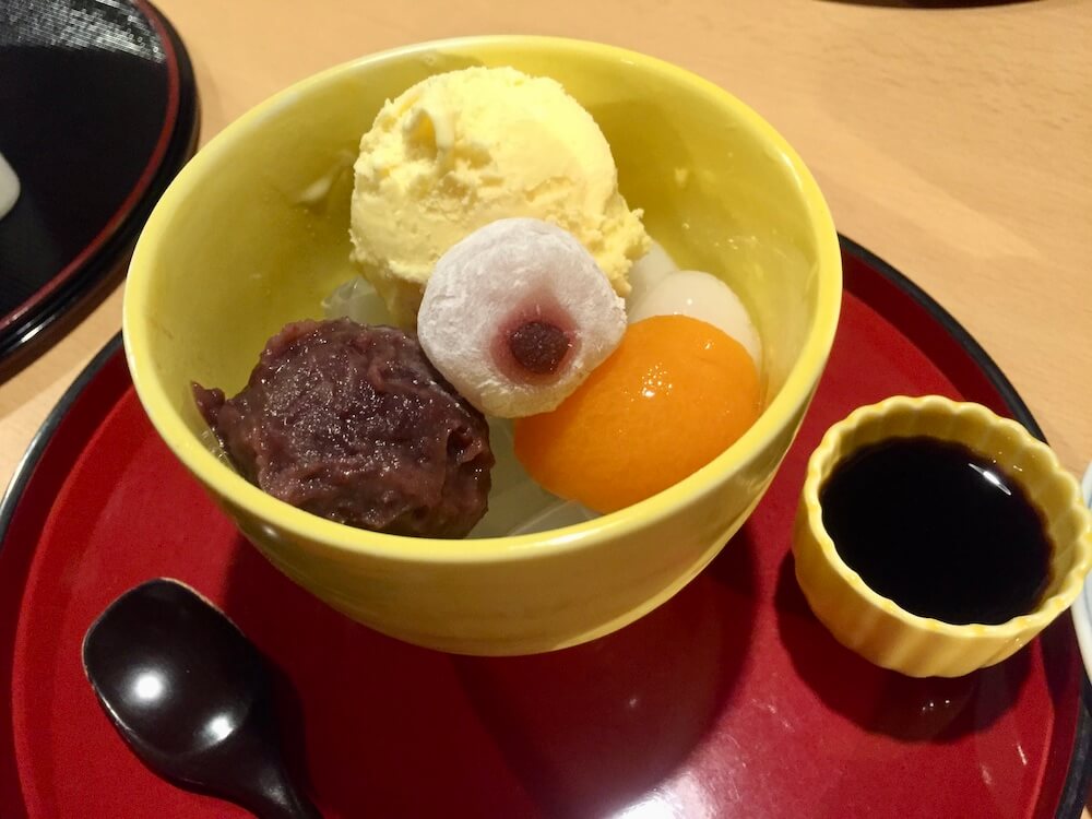 寒天・あんこ・白玉にきな粉を振り撒いて砂かけ婆の気分を味わえるというメニュー!