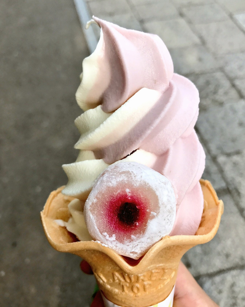 鳥取県の大山牛乳使用のソフトクリーム!個人的にはこれが鬼太郎茶屋で一番おすすめなくらいに美味い!季節で味が変わり、牛乳ソフトとのミックスにもできます。