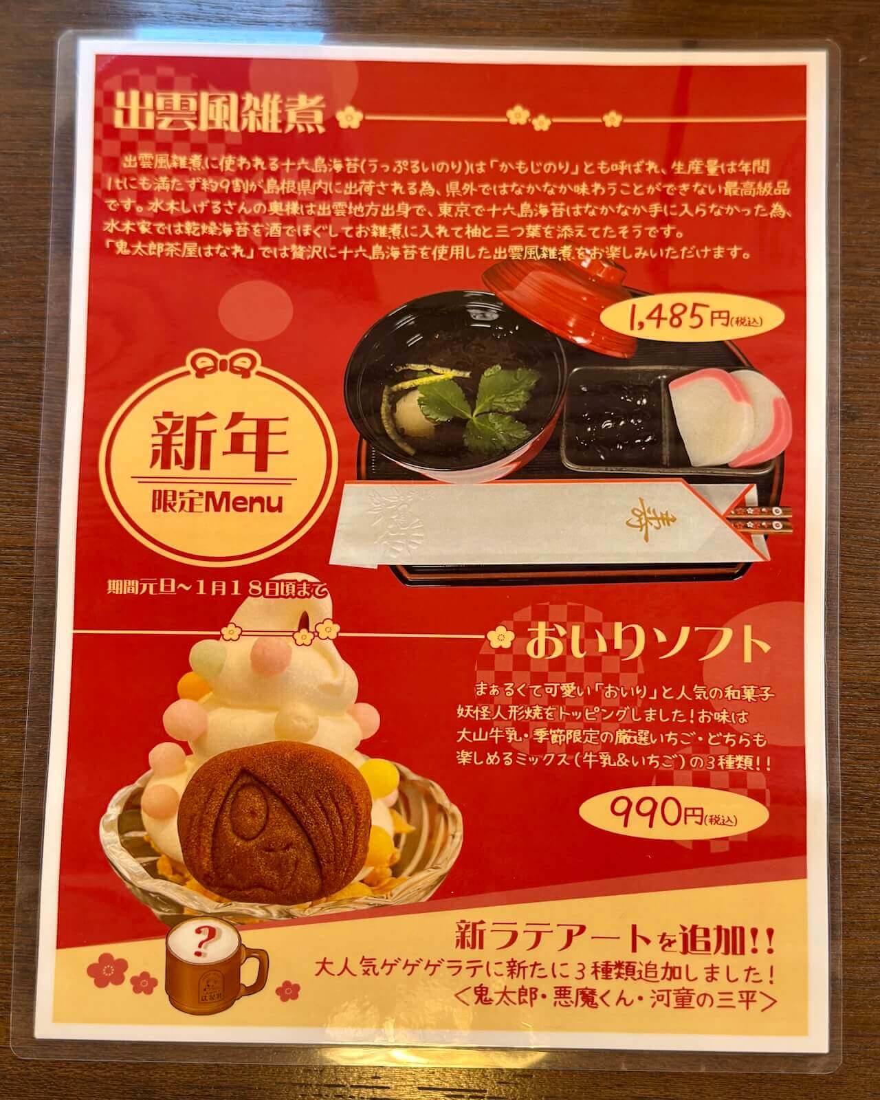 今年も早速鬼太郎茶屋へ行ってきました。新年限定メニューが登場しています!