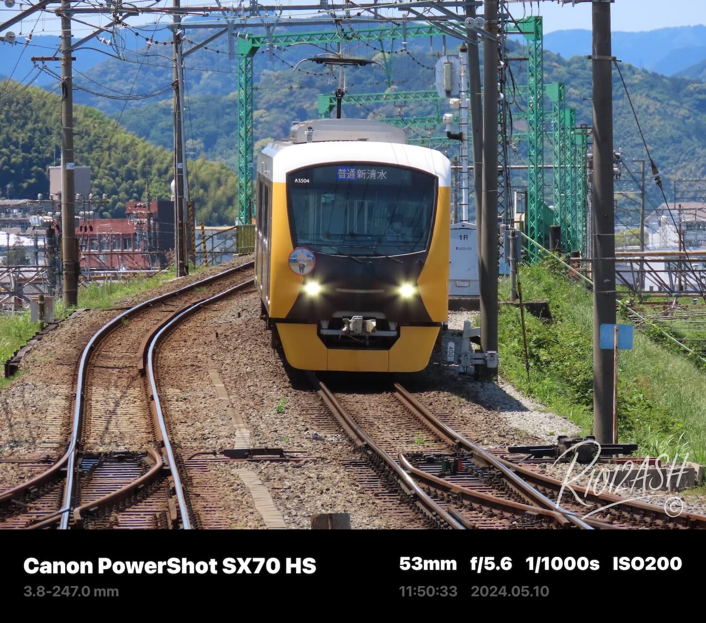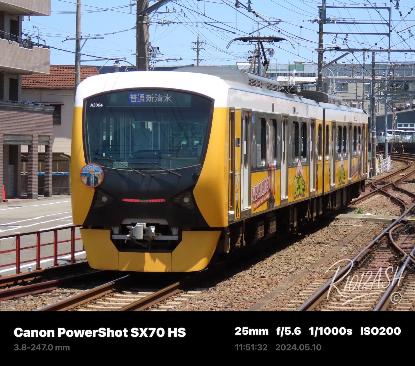 ラッピング電車を見るからには側面全体が撮れるポイントを探したところこの旅スタート地点の新清水駅近くにありました。